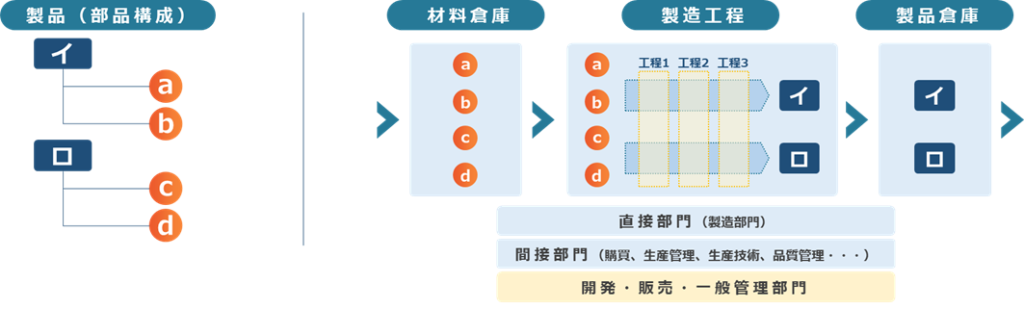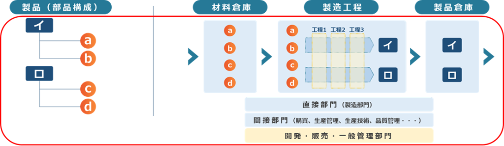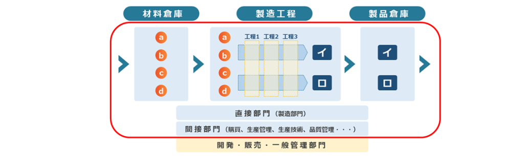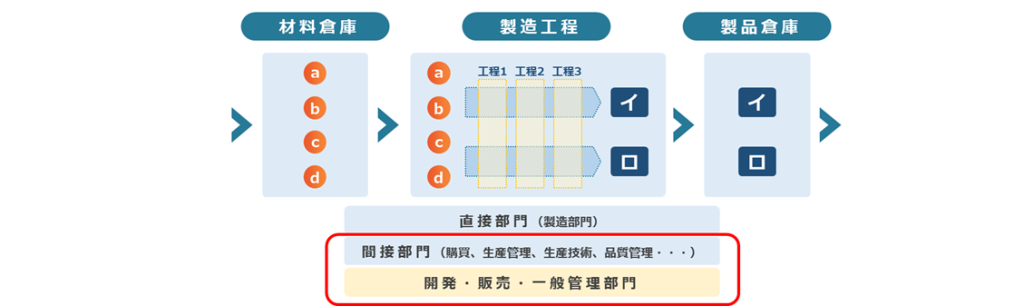 製造費は、製造の直接部門、間接部門で発生した人件費、経費です。