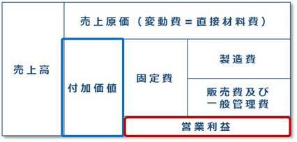 売上高-売上原価(変動費=直接材料費)が付加価値です。