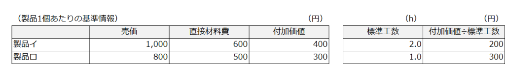 (一個あたりの付加価値÷標準工数の値が大きい製品を増やす)