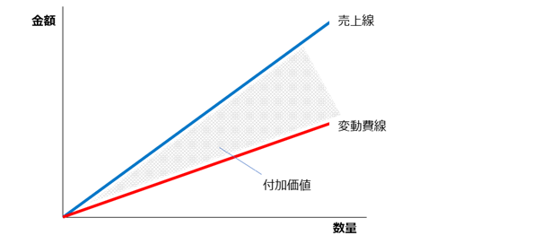 売上線と変動費線の間が付加価値です。