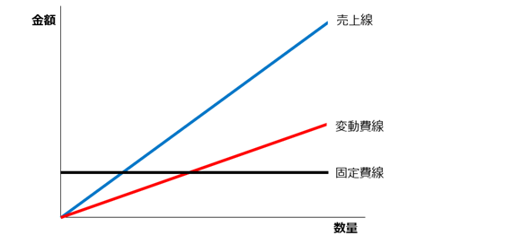売上が増えるにしたがって、変動費も増えていきます。
