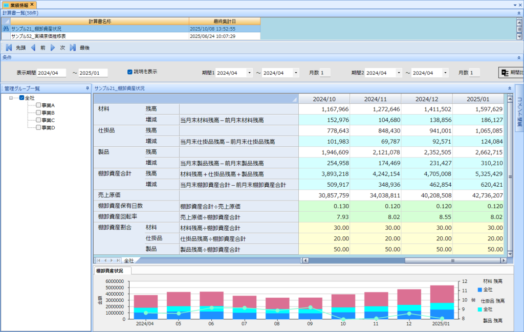 ProSee Viewの画面サンプル(棚卸資産状況)をご紹介します。
